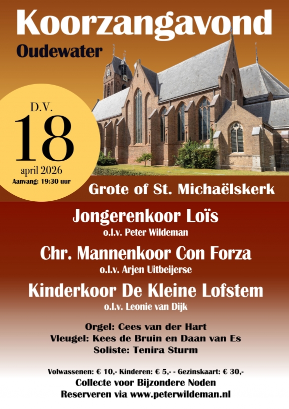 Zaterdag 18 april 2026 | Koorzangavond in de grote kerk van Oudewater